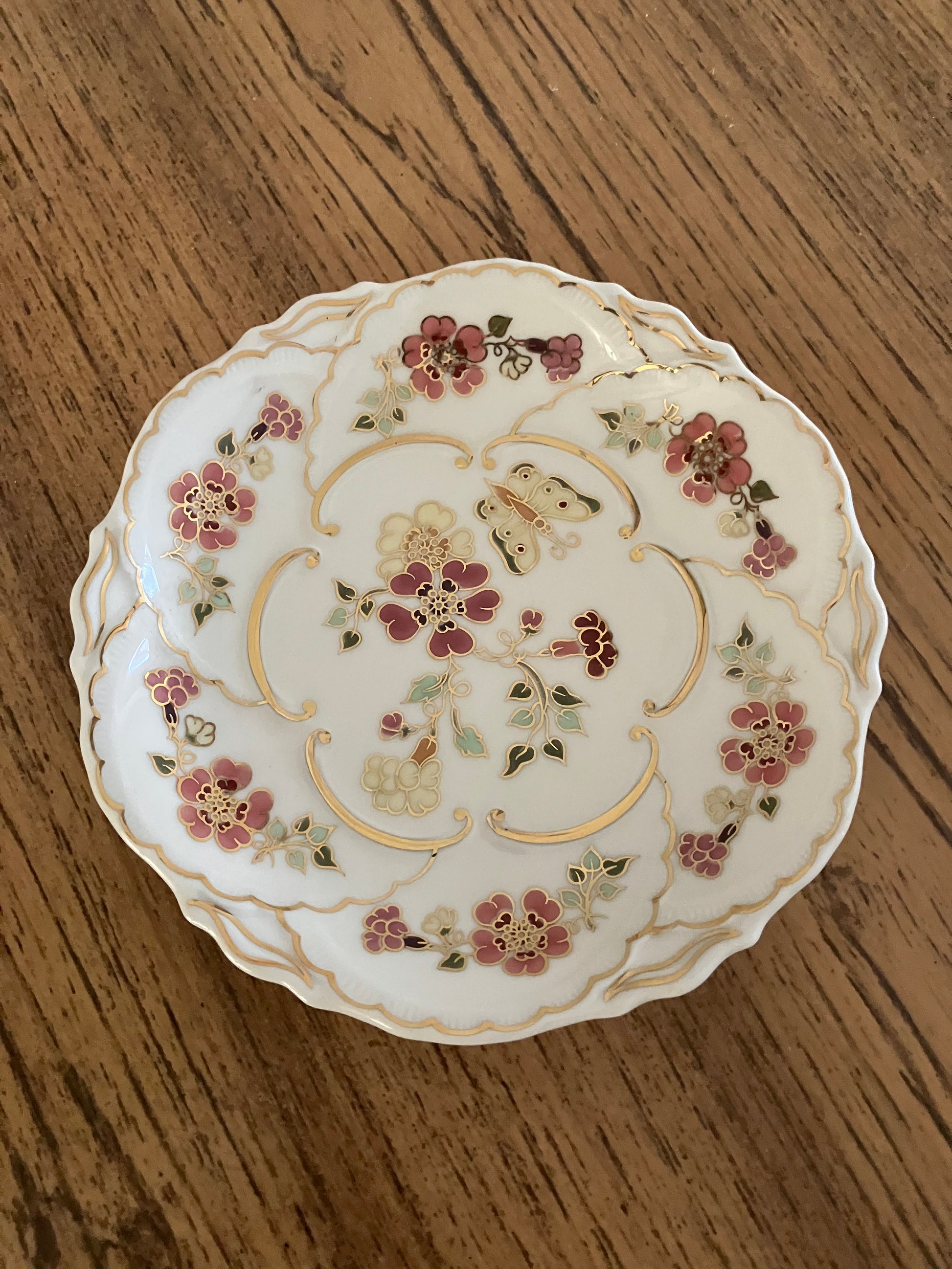 This charming plate features a delicate butterfly motif, hand painted with Zsolnay’s signature artistry and attention to detail. At 6.5 inches, it’s a versatile size that works beautifully as a decorative wall display or as a collectible accent piece. Its rarity and craftsmanship make it a must-have for Zsolnay enthusiasts and porcelain collectors alike.